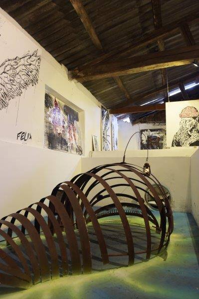 "Metallskulptur von Marion und Martina im alten Presshaus sowie Werke von Felix"